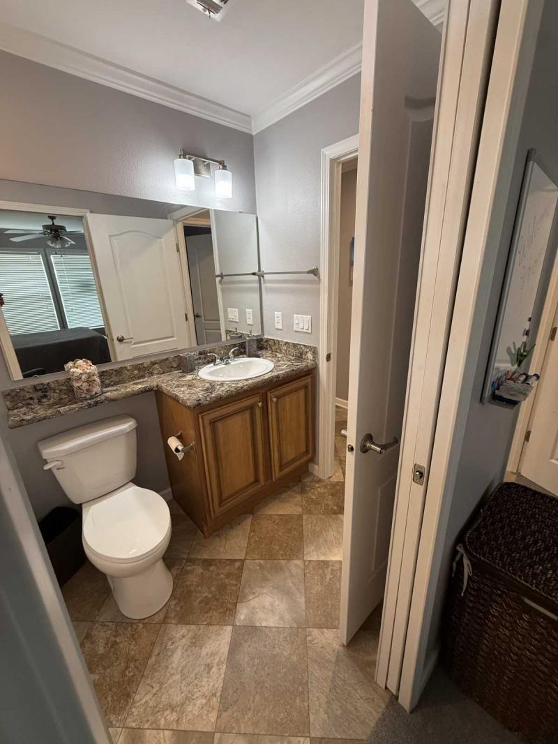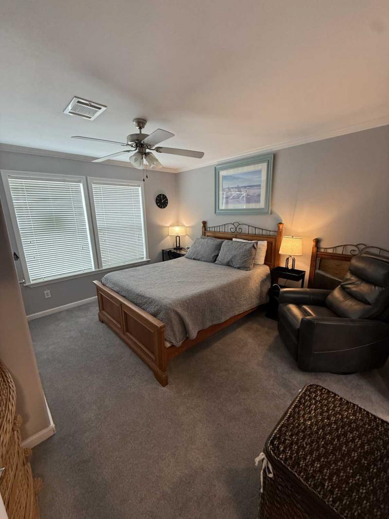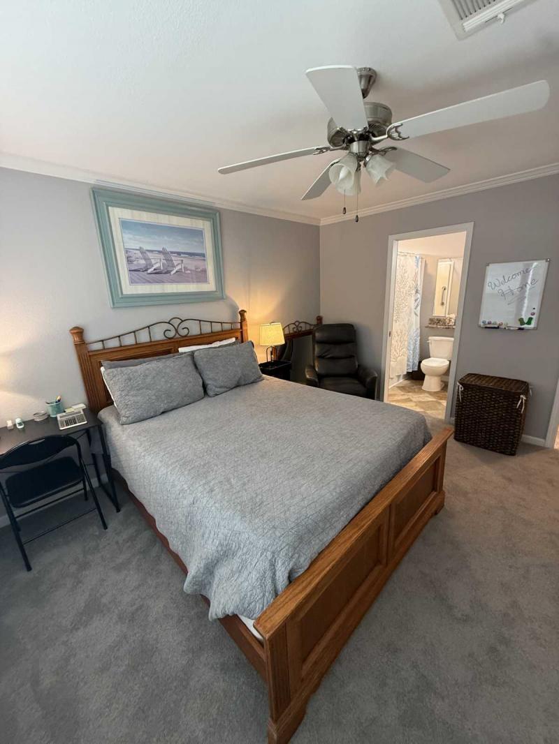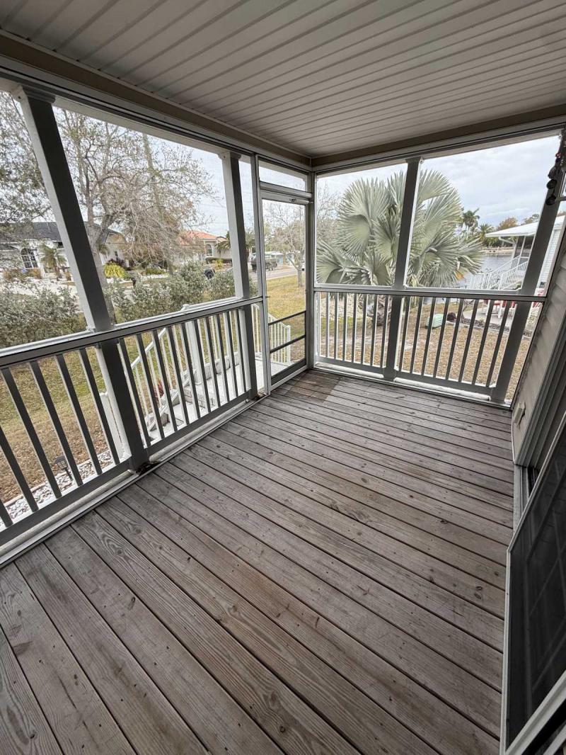 Welcome Home!!! This lovely double-wide home has it all. Full turn-key package includes all your kitchen needs, bath towels, and bed linens. This beautifully furnished home has wood cabinets, recently replaced carpet, new roof in 2025, and the water heater replaced in 2023. The guest bathroom is a jack and jill bathroom serving the hallway and the guest bedroom. Enjoy your morning coffee on the screened-in back porch with a partial view of the lake. Truly a must see home!!